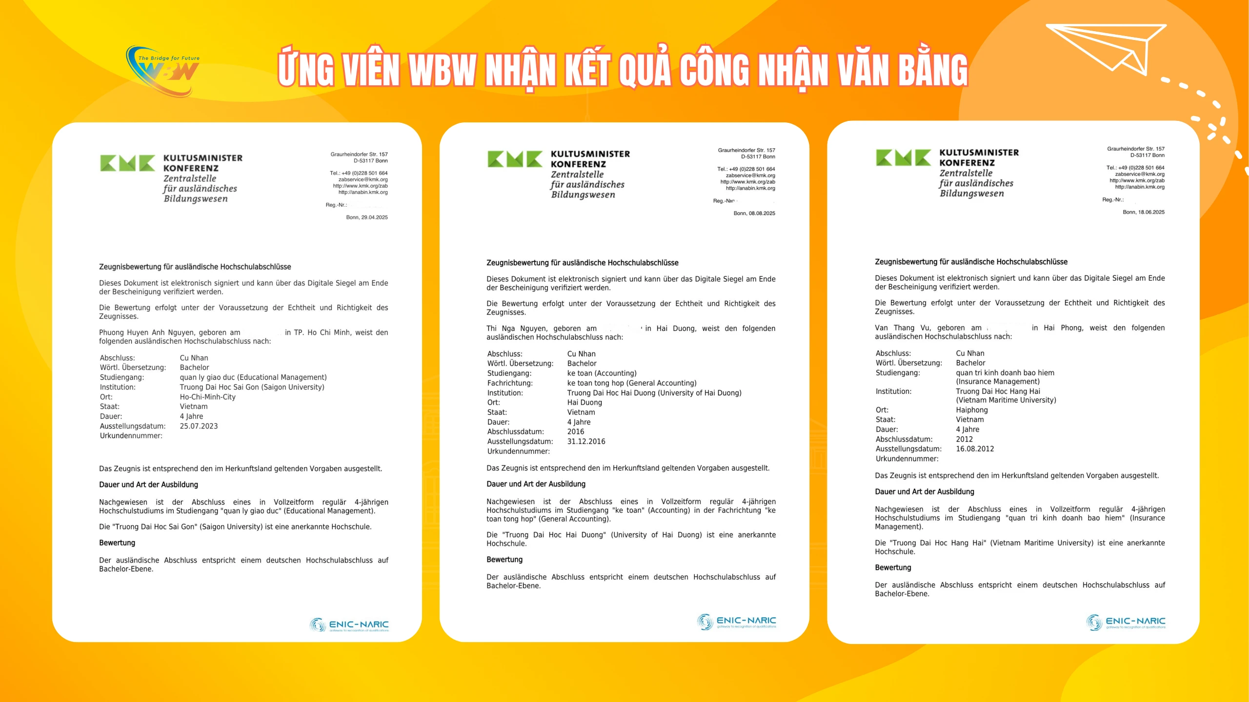 Tin vui Tháng 8 – Chúc mừng ứng viên WBW nhận kết quả Công Nhận Văn Bằng tại Đức Đây là cột mốc quan trọng,