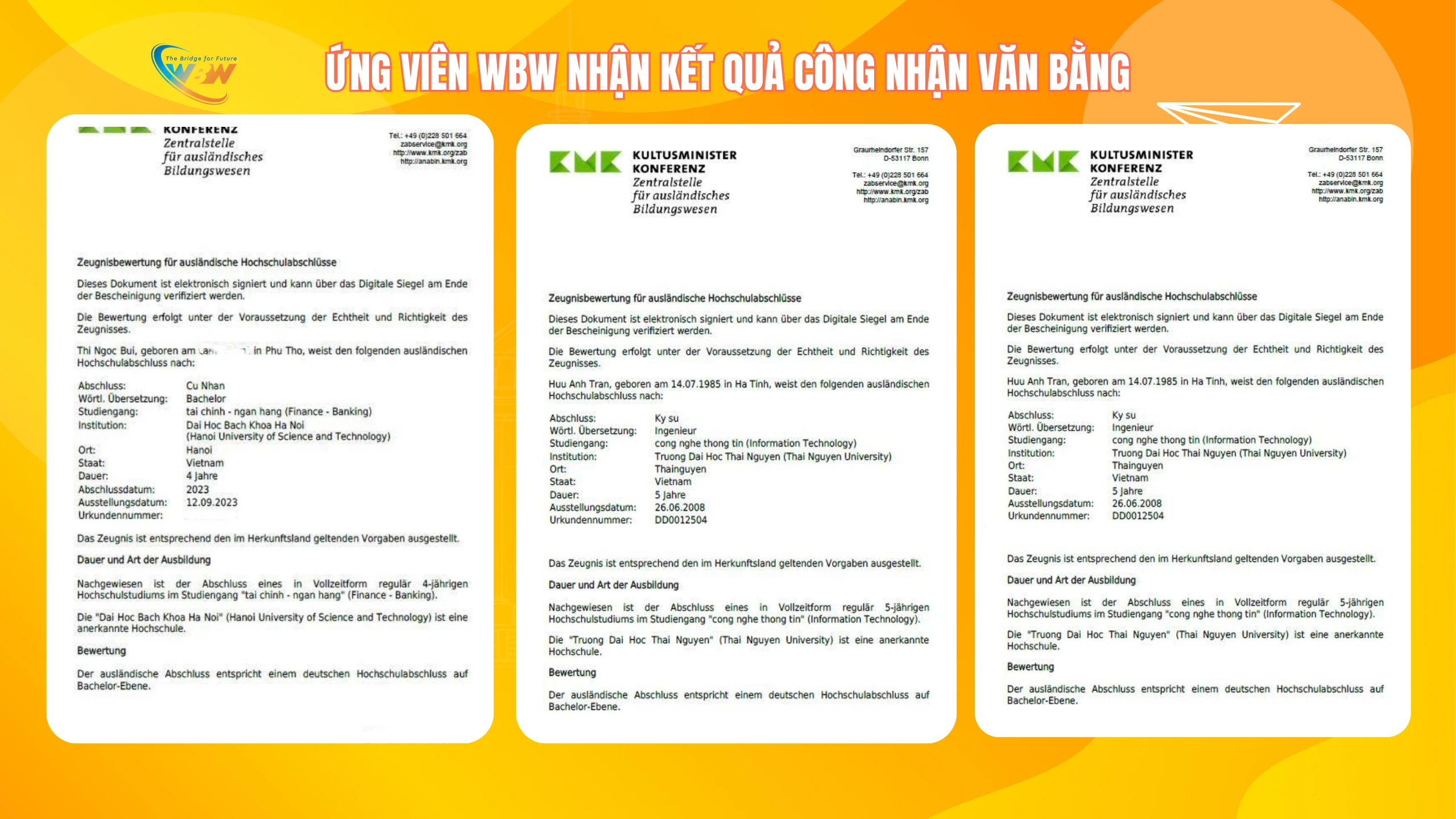 – Chúc mừng ứng viên WBW nhận kết quả Công Nhận Văn Bằng tại Đức